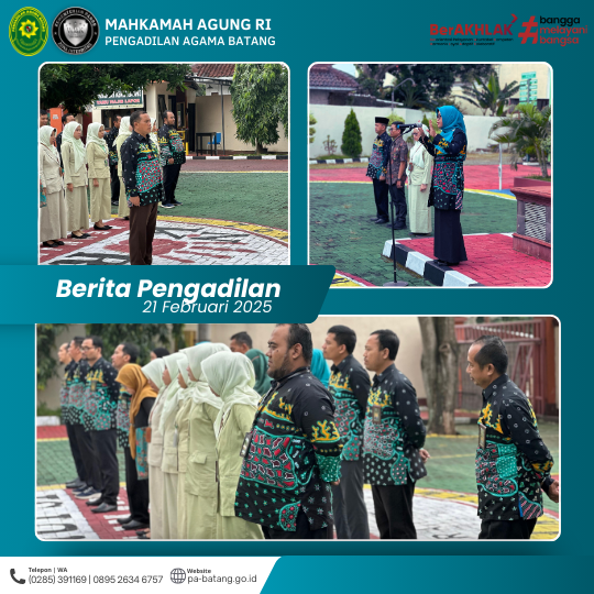BATANG – Jumat sore (21/2), menutup akhir pekan, segenap Pimpinan, Hakim, Pejabat Struktural dan Fungsional, Staf, serta PPNPN Pengadilan Agama Batang melaksanakan Apel Jumat Sore di halaman kantor Pengadilan Agama Batang. Apel ini menjadi momentum refleksi sekaligus penutup setelah menyelesaikan rutinitas pekerjaan selama sepekan.