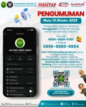 📢 PENGUMUMAN RESMI 📢 Mulai tanggal 13 Oktober 2025, Pengadilan Agama Batang resmi mengganti nomor WhatsApp Customer Service (Admin). Nomor…