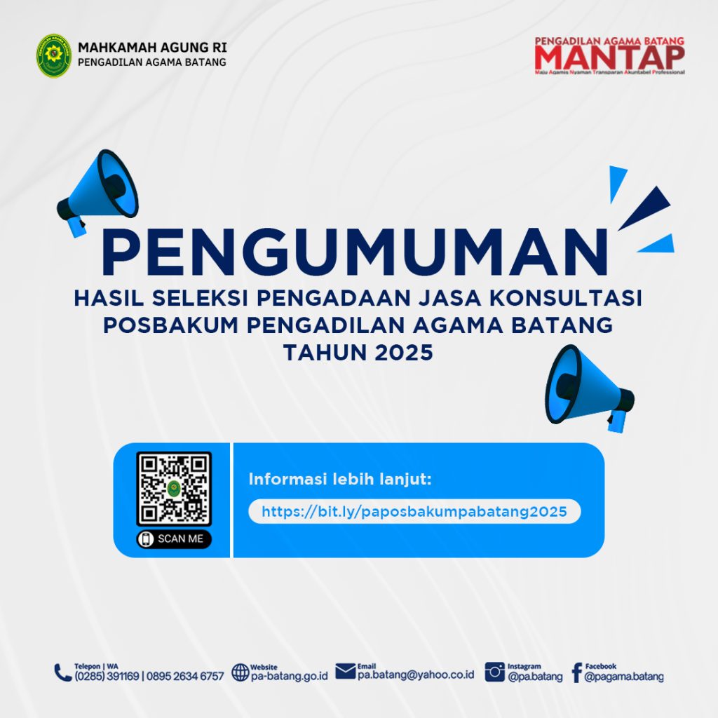 PENGUMUMAN HASIL SELEKSI PENGADAAN JASA KONSULTASI POS BANTUAN HUKUM (POSBAKUM) TAHUN 2025
