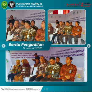 Selasa pagi, 14 Januari 2025, Ketua Pengadilan Agama (PA) Batang, Ikin, S.Ag., menghadiri undangan dari Pemerintah Daerah (Pemda) Batang dalam acara Puncak Peringatan Bulan Keselamatan dan Kesehatan Kerja (K3) Nasional Tahun 2025 tingkat Kabupaten Batang. Kegiatan ini dilaksanakan di Kawasan Industri Terpadu Batang (KITB), Kabupaten Batang.