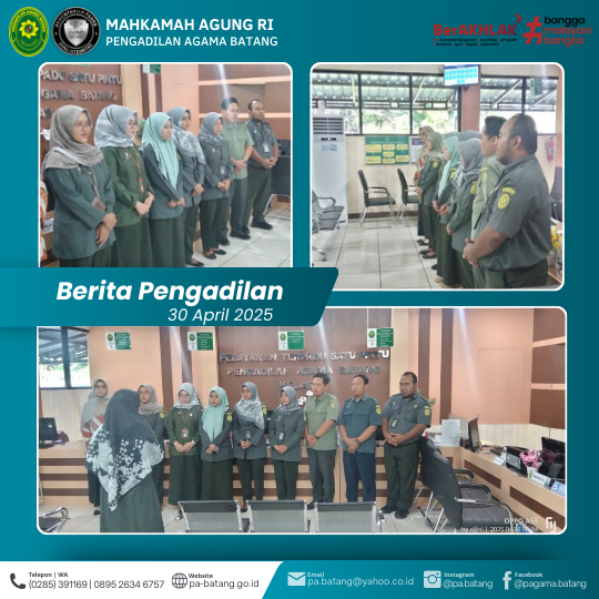 BATANG – Rabu, 30 April 2025, pagi yang produktif di Pengadilan Agama Batang dimulai dengan briefing rutin untuk Petugas Pelayanan Terpadu Satu Pintu (PTSP) dan Pos Bantuan Hukum (Posbakum). Kegiatan ini dilaksanakan tepat pukul 08.00 WIB di ruang PTSP, dipimpin oleh Panitera Muda Hukum, Fajar Fathonah, S.H.I.