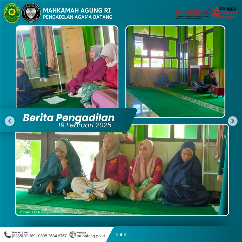 BATANG – Rabu, 19 Februari 2025, seluruh Hakim dan Aparatur Pengadilan Agama Batang mengikuti kegiatan rutin Pembinaan Iman dan Taqwa. Kegiatan yang diselenggarakan setiap Rabu sore ini berlangsung di Musholla Baitul Qisth, Pengadilan Agama Batang.