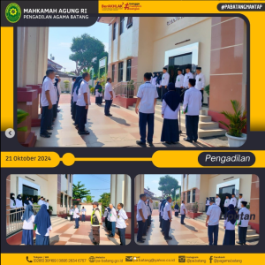 BATANG – Senin, 21 Oktober 2024, seluruh pimpinan, hakim, pejabat struktural dan fungsional, staf, serta PPNPN di Pengadilan Agama Batang mengikuti apel pagi di aula kantor. Apel ini dilaksanakan untuk menyemangati seluruh aparatur dalam menjalani rutinitas kerja selama sepekan ke depan.