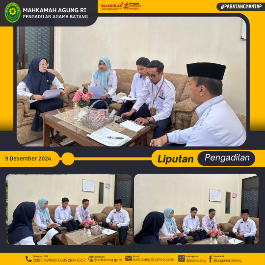 Pengadilan Agama Batang berkomitmen untuk meningkatkan kualitas layanan melalui pengawasan yang konsisten, sehingga mampu menjaga integritas dan profesionalisme dalam memberikan pelayanan kepada masyarakat.