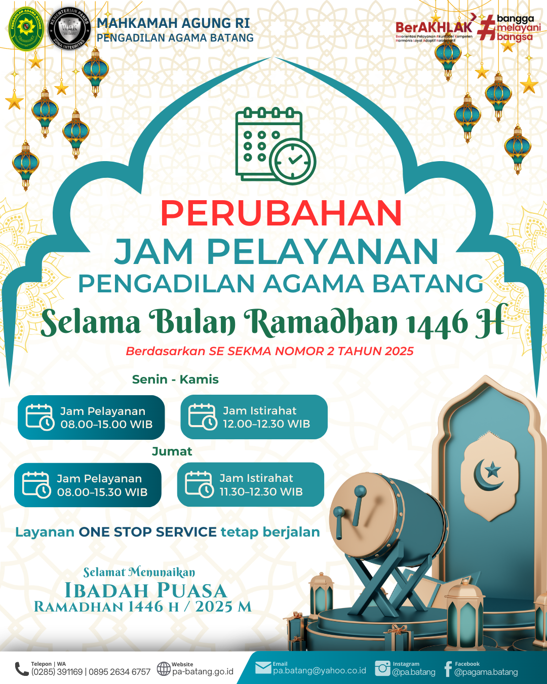 Pengumuman PERUBAHAN JAM PELAYANAN SELAMA BULAN RAMADHAN 1446 H Muhammad Yusuf, S.Kom Send an email 5 March 2025Pembaruan terakhir: 5 March 2025 5,512 Kurang dari semenit Salin Tautan Tautan Tersalin Muhammad Yusuf, S.Kom Send an email 5 March 2025Pembaruan terakhir: 5 March 2025 5,512 Kurang dari semenit Facebook X LinkedIn Tumblr Pinterest Reddit VKontakte Bagikan dengan email Cetak