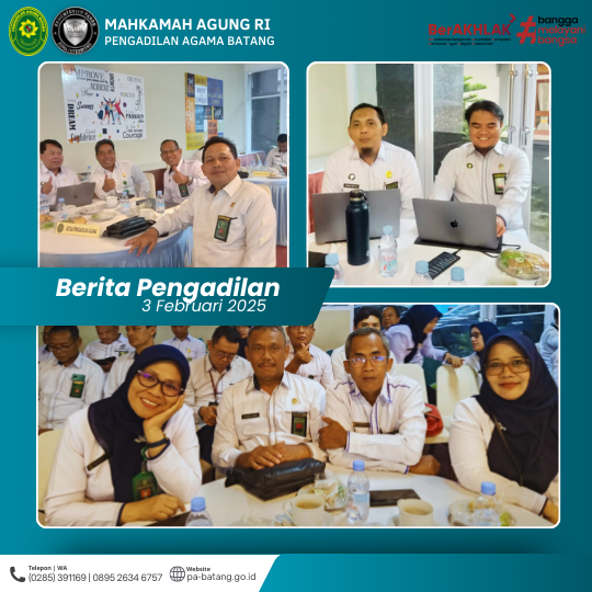 Pengadilan Agama Batang diwakili oleh Ikin, S.Ag., selaku Ketua, Sri Paryani Sulistyowati, S.Ag., selaku Panitera, dan Widodo Arif Wicaksono, S.Kom., S.H., selaku Sekretaris. Kehadiran mereka menunjukkan komitmen dalam mendukung sinergi dan koordinasi yang berkesinambungan di lingkungan peradilan agama Jawa Tengah.