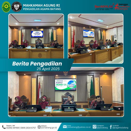 BATANG – Jumat, 25 April 2025, seluruh Hakim, Pejabat Struktural dan Fungsional, Staf, dan PPNPN Pengadilan Agama Batang berkumpul di Ruang Sidang Utama untuk mengikuti Rapat Monitoring dan Evaluasi (Monev) rutin.