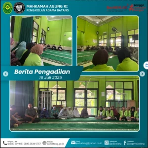 BATANG – Rabu, 16 Juli 2025, Musholla Baitul Qisth Pengadilan Agama Batang kembali menjadi pusat kegiatan spiritual dan intelektual aparatur peradilan. Seluruh Hakim, Aparatur PA Batang, serta mahasiswa PPL dari UIN Walisongo Semarang mengikuti kegiatan rutin Pembinaan Iman dan Taqwa (IMTAQ) serta Wawasan Pegawai, yang diselenggarakan setiap Rabu sore.