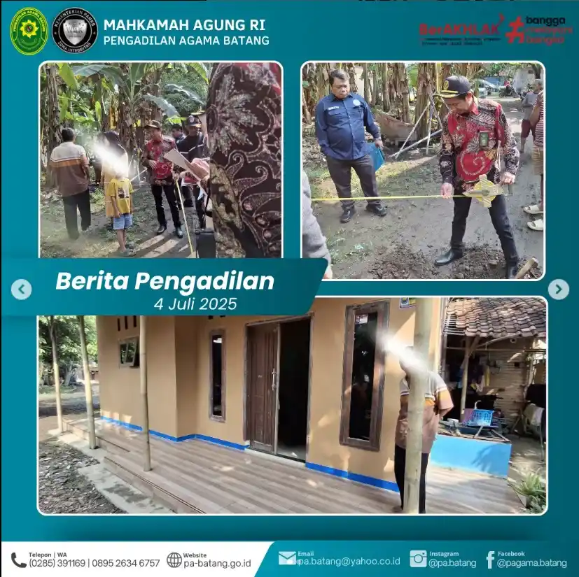 BATANG, 4 Juli 2025 β Pengadilan Agama Batang kembali menunjukkan komitmennya dalam menegakkan keadilan secara objektif dan transparan dengan menggelar sidang luar gedung (descente) dalam perkara sengketa harta bersama, yang berlokasi di Desa Kalibeluk, Kecamatan Warungasem, Kabupaten Batang.